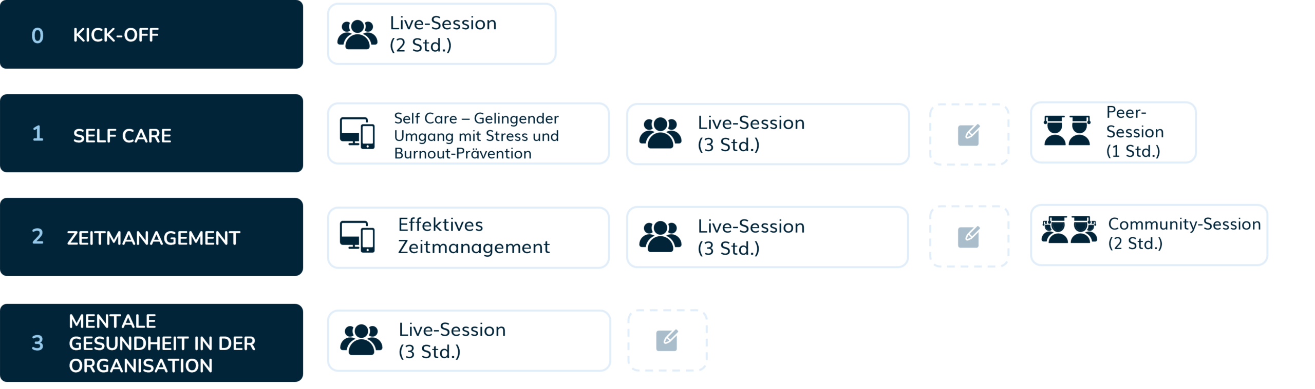 So könnten die Inhalte eines ganztägigen Trainings (8 Std.) in Präsenz aussehen: